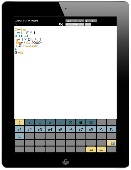 La part inferior de la pantalla conté el teclat, que de forma dinàmica s'autoconfigura per mostrar sempre els símbols pertinents a la fase de programació en la qual es troba l'entrada.