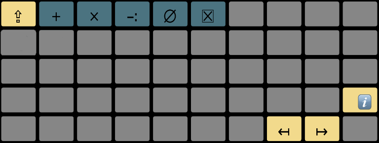 La primera línia del teclat matemàtic la formen els operadors bàsics, que expressen operacions aritmètiques senzilles: