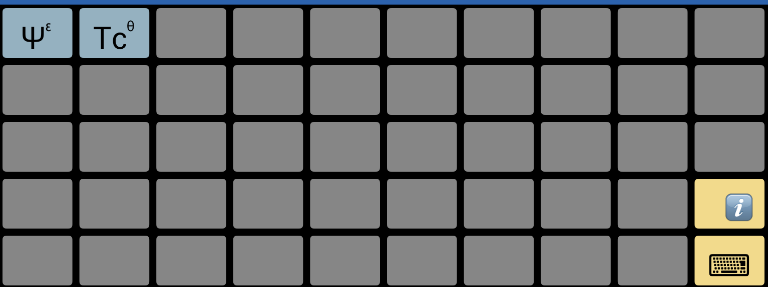 En les tecles de la cantonada inferior esquerra, hi ha quatre símbols complementaris, que premuts durant un segon permeten la introducció de subíndexs (⇣), superíndex (⇡), ajuntar caràcters(⇇).