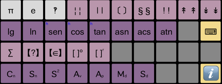 De forma dinàmica, depenent del punt de la fórmula que s'està programant, es superposen a les tecles principals els operadors o valors auxiliars en forma de superíndex.